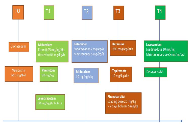 In our case, the patient received a combination of conventional and unconventional therapies, including benzodiazepines, barbiturates, ketamine, and other anti-seizure medications, without significant benefit. Additionally, a ketogenic diet was implemented as a non-pharmacological approach to reduce seizure frequency.